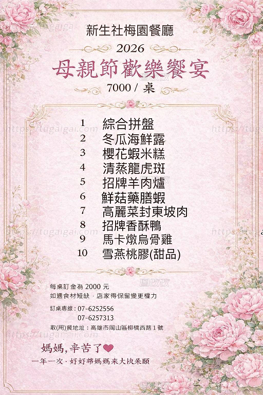 #高雄母親節餐廳 #岡山美食推薦 #母親節聚餐 #高雄桌菜 #岡山餐廳推薦 #家庭聚餐首選 #高雄合菜 #母親節訂位 #梅園餐廳 #高雄必吃 #岡山聚餐 #母親節餐廳推薦